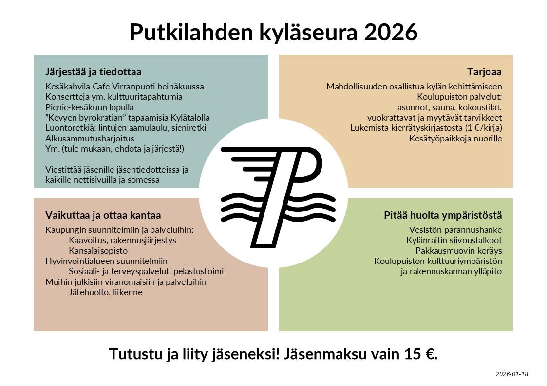 Putkilahden kyläseuran sääntömääräinen syyskokous pidetään sunnuntaina 30.11.2025 klo 13 Kylätalolla (Vespuolentie 1977) Huom: Kokouspäivä on muuttunut aiemmasta alustavasta tiedosta! Kokouksessa…